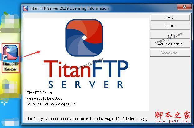 13、选择桌面图标,运行Titan FTP Server Enterprise 2019,进入激活界面