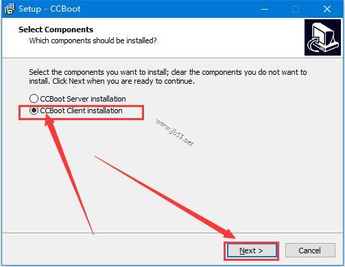 2、运行应用程序“ccbootsetup20190601.exe”进入安装界面,选择安装“server”还是“client”,本文默认第二项,点击“next”