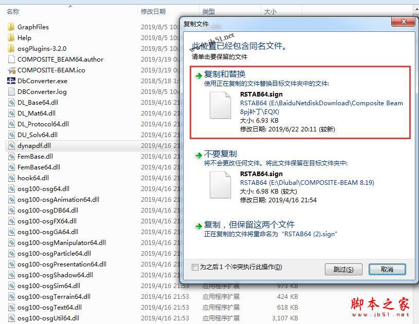 11、然后复制”DL_Base64.dll”、RSTAB64.sign文件到默认路径【C:\Program Files\Dlubal\COMPOSITE-BEAM 8.19】替换原文件