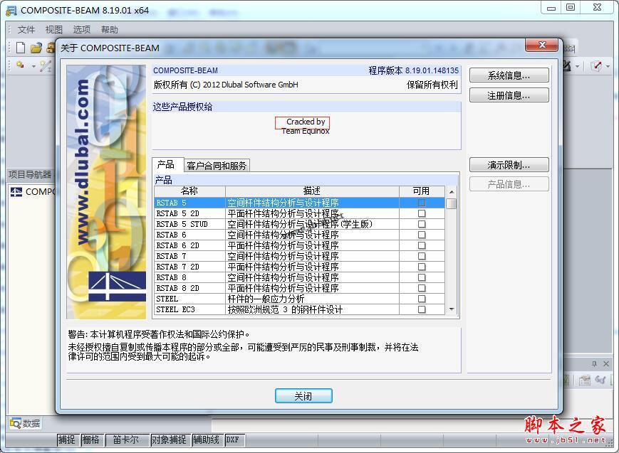 ps:本平台提供DLUBAL Composite Beam 8中文破解版的安装激活教程,附有破解文件下载,可以完美成功激活软件,详细的安装教程请参考本文操作步骤。亲测可用!另外注意使用Composite Beam不需要RSTAB许可证,可以进行独立操作。