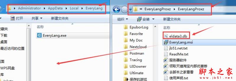 6、将软件包里的eldata3.db复制粘贴到软件安装目录里(Administrator/AppData/Local/EveryLang),本软件破解到此结束