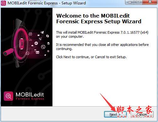 2、双击运行setup_MOBILeditForensicExpress_7.0.1.16577_x64.exe,点击next