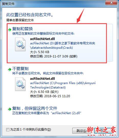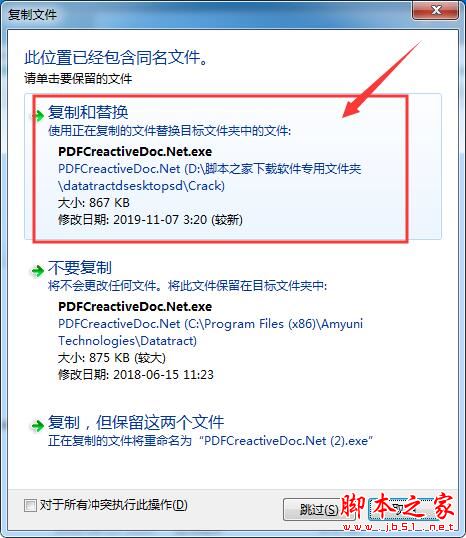 7、将软件包里的Crack文件夹里的替换补丁粘贴到软件安装目录里(默认C:\Program Files (x86)\Amyuni Technologies\Datatract\)