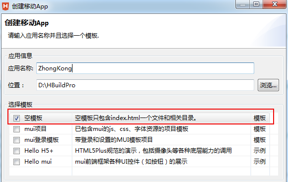 1,下载HBuilder,注册并登陆。首先打开“文件”-“新建”-“移动APP”,输入“应用名称”,“位置”可以根据需要自己选择即可,“选择模板”建议选择空模板;