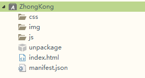 2,新建完成后, 在项目管理器会显示新建的项目目录,其中css,img,js和index.html这几个文件可删可改可替换。