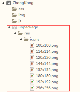 unpackage文件夹是放置app图标和启动界面的图片。