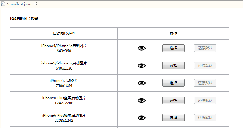 6,启动图片(splash)配置,点击切换到启动图片配置