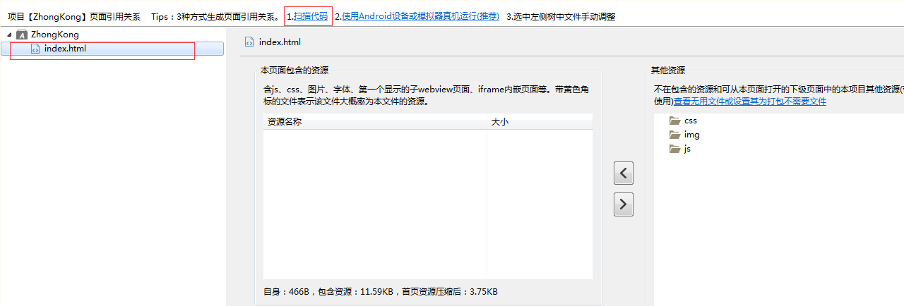 首先点击“扫描代码”,再点击左边index.html文件