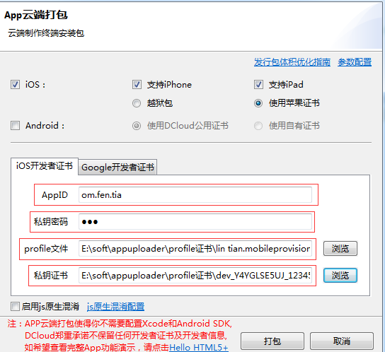 1),这里如果选择越狱包就不需要苹果证书,一路默认设置就可以打包成功,但是打包的App只能安装在越狱过的手机,没越狱安装不了。