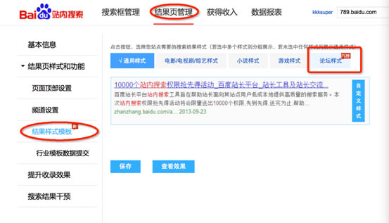 为了更好适配社区论坛类网站,为用户带来更佳浏览体验。论坛样式可以最大程度保证百度站内搜索对论坛内容的完整收录;搜索结果页可显示帖子的出处、作者、时间、评论和回复数量等标签;筛选维度新增按板块筛选功能,更方便用户精准找到所需内容;还可通过搜索用户名查询该用户所发内容;以百度先进的搜索技术作为后盾,服务稳定,对于搜索字数和次数没有任何限制;特别指出的是,使用百度站长平台Discuz!结构化数据插件的网站无需再次提交数据,可直接同步至站内搜索。http://zn.baidu.com/cse/wiki/help?wid=7&aid=114