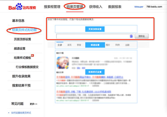 可以满足了诸多站点在个性化设置方面的需求。此前时常有网站诟病百度站内搜索的的搜索框结果页样式单一,与网站整体设计风格不匹配。此次全新推出页面顶部自定义功能,网站可以根据自身的配色、排版对搜索框进行配置,嵌入自有导航条等,实现与网站的和谐统一。