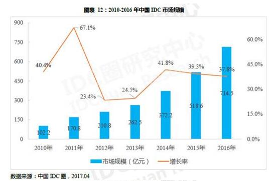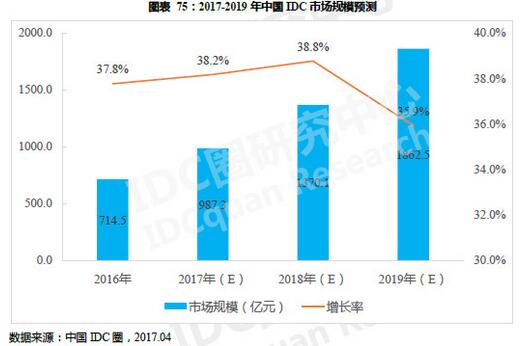 但在搜索引擎中搜索“中国IDC市场”,却能找到不少振奋人心的IDC市场分析数据,“2016年中国IDC市场继续保持高速增长,市场总规模为714.5亿元人民币,同比增长37.8%”,“2017年中国IDC市场规模将超900亿元”,“2019年我国IDC市场规模将达1900亿元”,等等。然而,动辄上百亿规模的行业,对于身在其中的中小IDC商实则不容乐观。