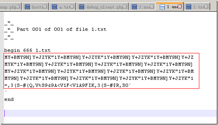 UUencode编码起先用在unix网络中,先是Unix系统下将二进制的资料借由uucp邮件系统传输的一个编码程式,也是一种二进制到文字的编码。不属于MIME编码中一员。它也是定义了用可打印字符表示二进制文字一种方法,并不是一种新的编码集合。主要解决,二进制字符在传输、存储中问题。它早期在电子邮件中使用较多,最近这些年来基本上被MIME 中Base64所取代了。E-mail中一般采用UU、MIME、BINHEX三种编码标准! 我想,了解下这种编码将二进制字符转换为可打印字符实现思路!对我们以后做类似处理工作,应该会有很多的启示。