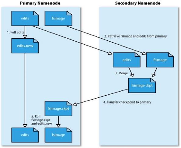 SecondaryNameNode负责定时默认1小时,从namenode上,获取fsimage和edits来进行合并,然后再发送给namenode。减少namenode的工作量。