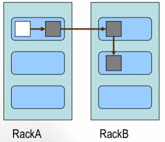 .第三个副本,放置在与第二个副本相同机架上的相邻的节点上