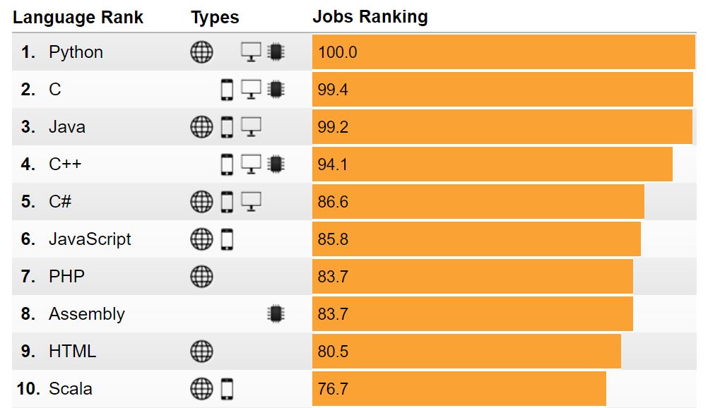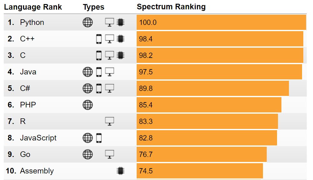 IEEE Spectrum 2018 编程语言 Top 10 如下: