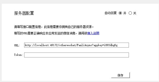 发布接口之后将接口地址填入微信助手“自动回复”菜单url输入框中,如下图所示: