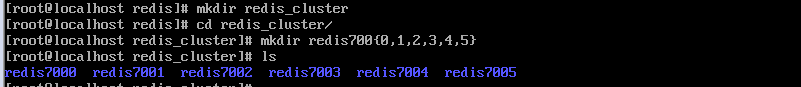 mkdir redis700{0,1,2,3,4,5}//批量创建六个redis节点工作目录,三主三从。