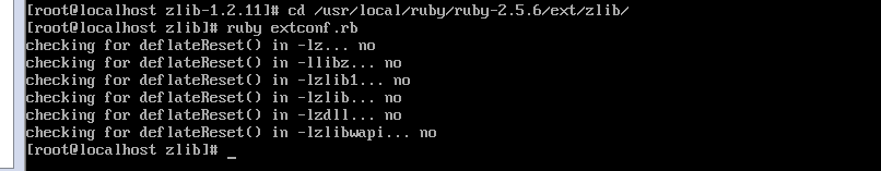 cd /usr/local/ruby/ruby-2.5.6/ext/zlib/ ruby extconf.rb
