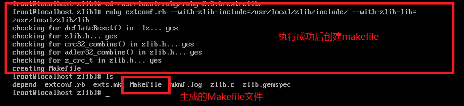 ruby extconf.rb --with-zlib-include=/usr/local/zlib/include/ --with-zlib-lib=/usr/local/zlib/lib //会生成一个Makefile文件