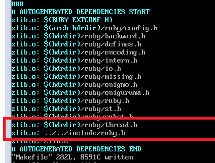 zlib.o: $(top_srcdir)/include/ruby.h 改成:zlib.o: ../../include/ruby.h