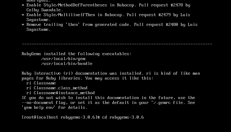 cd /usr/local/rubygems/rubygems-3.0.6 ruby setup.rb