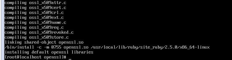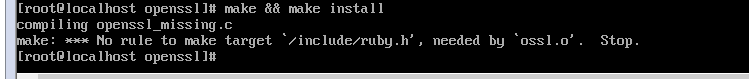 cd /usr/local/ruby/ruby-2.5.6/ext/openssl/ ruby extconf.rb --with-openssl-include=/usr/local/openssl/include/ --with-openssl-lib=/usr/local/openssl/lib 此时会生成Makefile文件,下面出现的错误需要修改本文件 make && make install