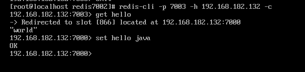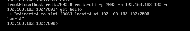 使用集群方式连接集群redis-cli -p 7003 -h 192.168.182.132 -c(7003是7000的备机)