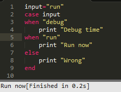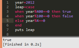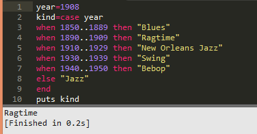 和if一样,case返回执行的最后一个表达式的值;而且如果表达式和条件在同一行上的话,可以用then关键字来加以区分。
