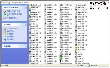 首先查看安装路径C:\Program Files\Dr.Web。大蜘蛛程序文件夹中文件共有130个对象,其中包括两个文件夹,Dr.Web32.tmp和infected.!!!分别是大蜘蛛的临时文件夹和可疑文件隔离文件夹。