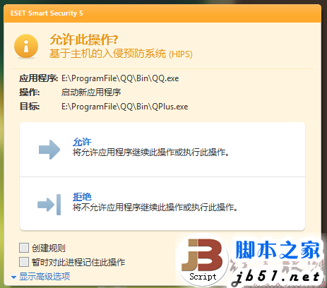 重装系统后杀毒软件也是重装的。用了nod32 ESET5.0发现其HIPS功能。还可以自动规则。摸索了一把,发现很好用。可以用来禁止程序执行。当然HIPS的功能还有很多。此处只是用来屏蔽QQ启动QPlus一用作抛砖引玉。