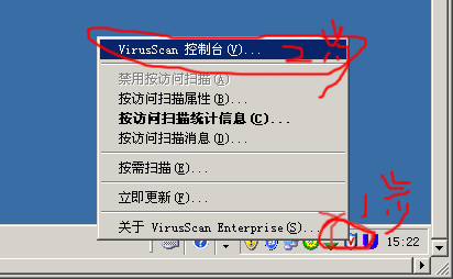 第一步:在系统的右下角有个图标,右键选择 VirssScan 控制台,如下图所示: