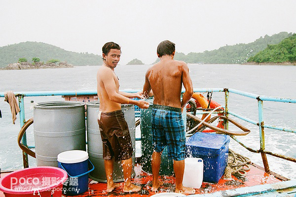 图中,匆匆移动的站台人群,缓缓逼近的火车和潜水教练肆意溅起的洗澡水,都让人从凝固的画面里,隐约感受到了一丝当时的氛围,比如火车站独有的喧哗、列车进站的呜鸣声,以及东南亚夏季燥热粘湿的空气。