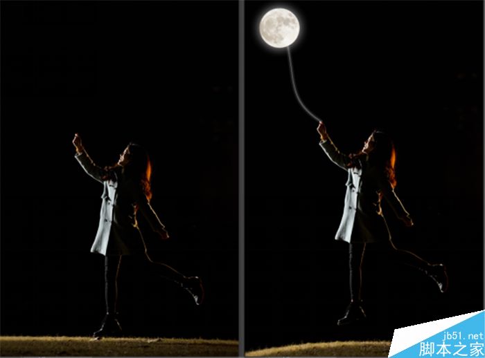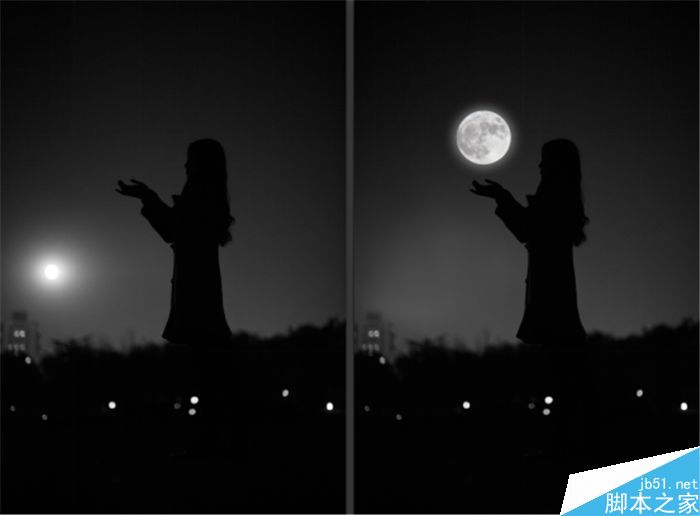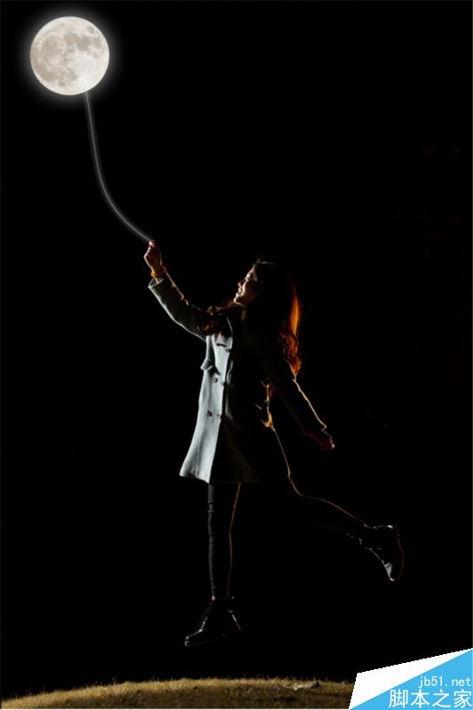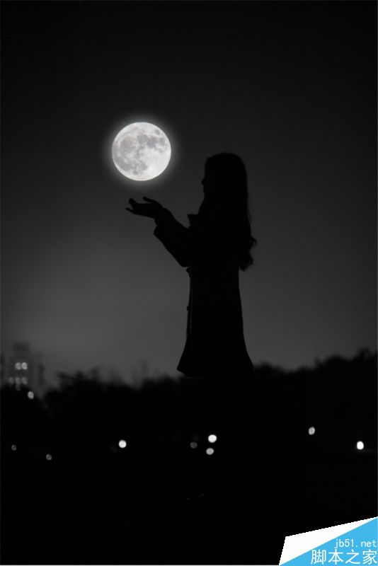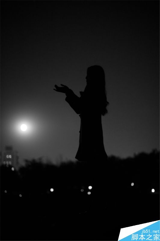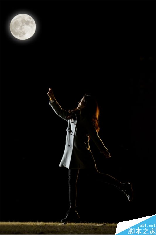 首先需要说的是,人是拍的(模特儿是课代表枣,单身哟~),月亮也是拍的,但最终效果,必定是P的对吧。