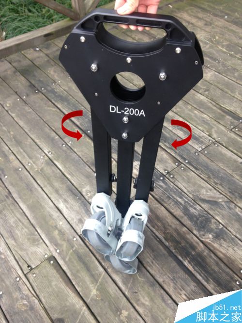1、拆解云台。在连接处有一个可以旋转的圆钮,顺时针扭转,将其与云台分离开。然后用手托住云台,即可取下。