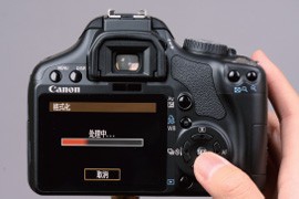 5、 插入存储卡,进行格式化。先关闭电源,将存储卡插入存储卡插槽内,方向是贴有标签的一面朝向自己插入相机。然后关闭存储卡插槽盖,打开电源,按下MENU按钮,显示菜单。最后从菜单中选择“格式化”,将选择框移至“确定”,按下+字键中央部分的SET按钮,进行格式化。当进度指示条消失、返回菜单画面后,及完成格式化操作。
