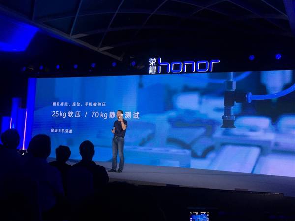 发布会上,荣耀总裁赵明特别强调了荣耀畅玩6A的作用品质,经过200次滚筒跌落测试,手机依然正常工作。此外,还模拟裤兜、座位,手机被积压(25kg软压、70kg静压)测试保证手机强度,支持液体泼溅。