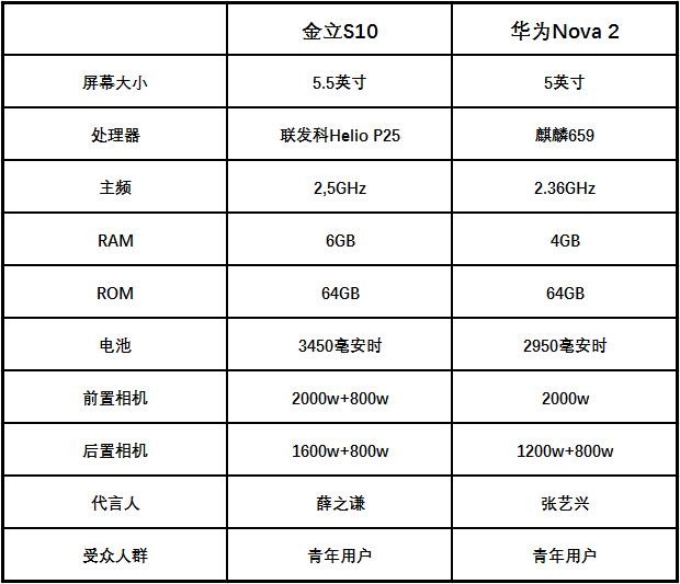从上边的这份简单地总结里就可以轻松的看出来,金立S10和华为Nova 2这两款产品定位都是在年轻用户的身上,但是从一些数据也可以看出来在这层定位的背后,两家厂商各自都有着另外的打算。