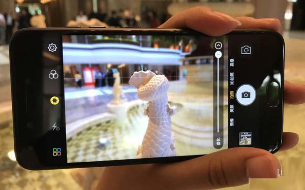 在上图中我们就能看到金立S10的强大虚化拍摄能力,图中的金立S10正处于虚化拍摄的预览界面,此时的虚化预览就非常的自然,被拍摄的主体与背景之间的过度十分的自然,背景虚化效果也非常的不错。
