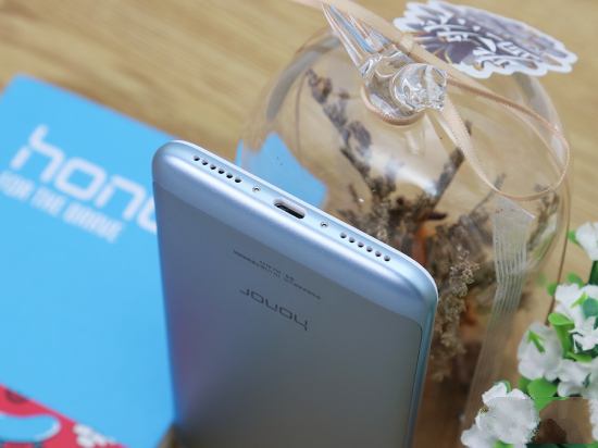 机身背部采用了金属材质打造,并辅以喷砂工艺,在持握感上有所提升。而且荣耀畅玩6A并没有采用常规的三段式设计,而是使用了全新的中框理念来打造,给用户非常新颖的感觉。