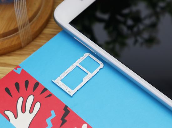 机身右侧是音量键和电源键,左侧是卡槽,荣耀畅玩6A支持双卡双待和扩容,而且支持全网通。
