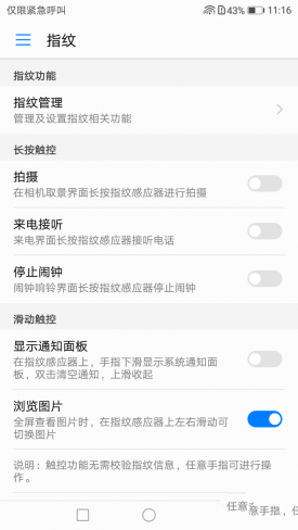 而在指纹设置中,用户可以进行指纹录入,并可以通过对指纹按键的触控来进行拍照、接电话、浏览图片等,增加操作的建议性。而且荣耀畅玩6A还支持一指闪付,在熄屏状态下可以直接打开支付界面付款,为用户节省时间。