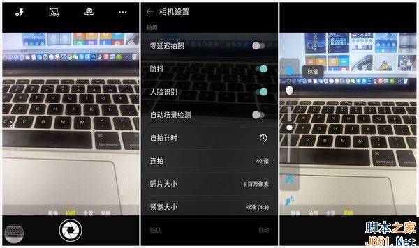 正面上方,正面摄像头、闪光灯、听筒孔一条线,简单的对称美学我个人还是很喜欢的。下方采用的是触摸式按键设计,三个按键从左到右分别是呼出后台、返回桌面、返回键。前置500万像素摄像头,拥有美颜效果。