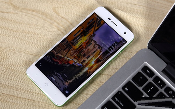 中兴小鲜5搭载了5.0英寸屏幕,配合上2.5D弧面玻璃,使其正面看上去显得温润晶莹。屏幕上方依次为光线感应器、听筒以及前置镜头。屏幕下方则采用三枚虚拟按键设计。