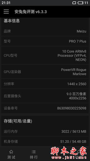 魅族PRO 7 Plus安兔兔跑分
