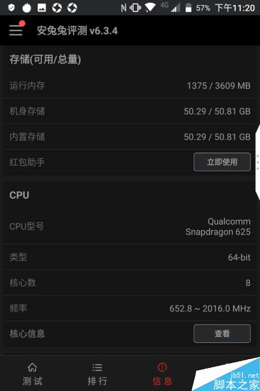 这款手机采用的是高通骁龙625处理器,2.0GHz主频,4+64GB配置,另外支持micro SD存储卡,最高2TB扩展。