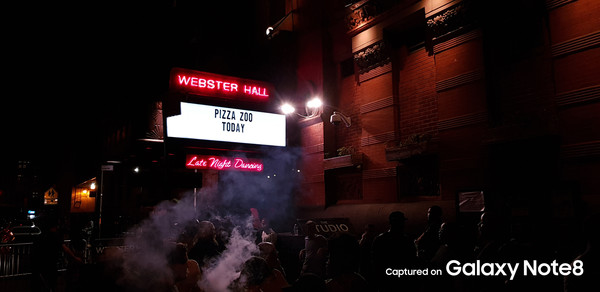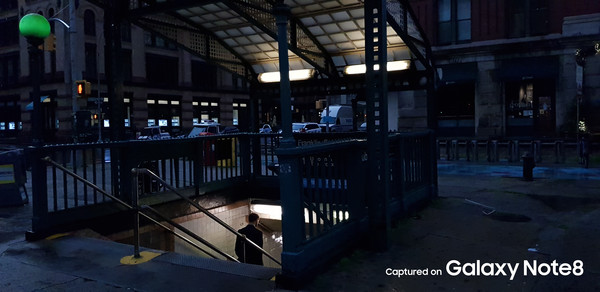 夜景拍摄方面,得益于三星Note8的大光圈和OIS光学防抖双摄,拍出来的画面更加纯净,噪点很少,炫光控制得也不错。同时暗部细节也保留了很多,极弱光环境下还能看见画面中的物体,可以说达到了目前的旗舰级别。