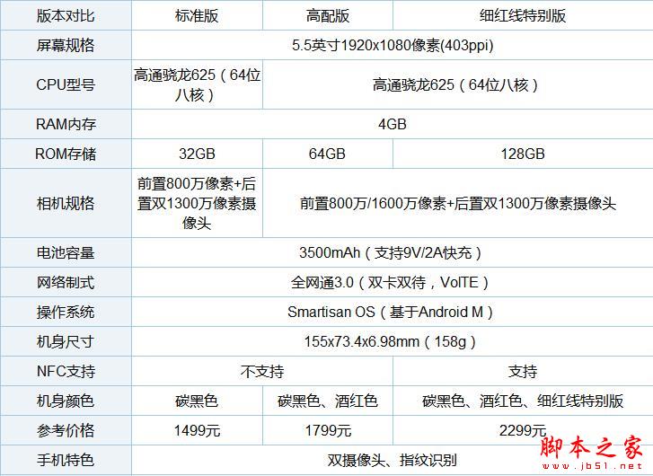 坚果pro各版本配置参数