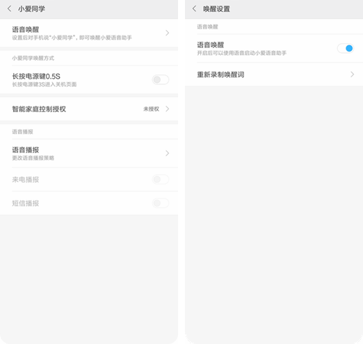 实际的体验和小米AI音箱基本一致,唤醒热词依然是熟悉的“小爱同学”,支持声纹识别(只识别用户自己的声音)和待机状态下唤醒,唤醒的成功率很高并且基本不会出现误唤醒,安静的环境下,距离手机3米左右依然可以正常唤醒。