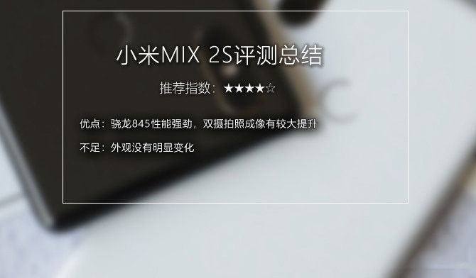 用一句话总结的话,MIX 2S是史上拍照最好的小米手机,也是小米第一款可以跻身拍照第一梯队的手机。